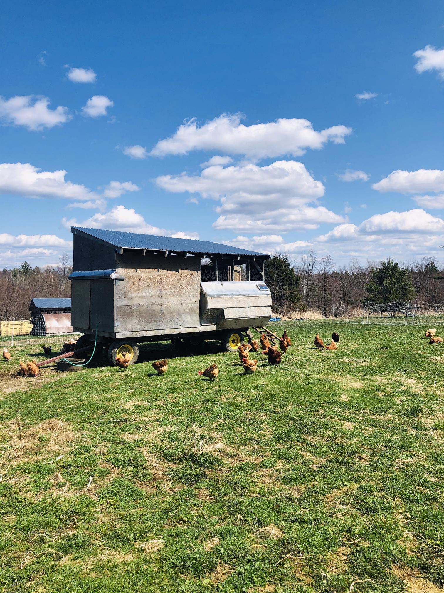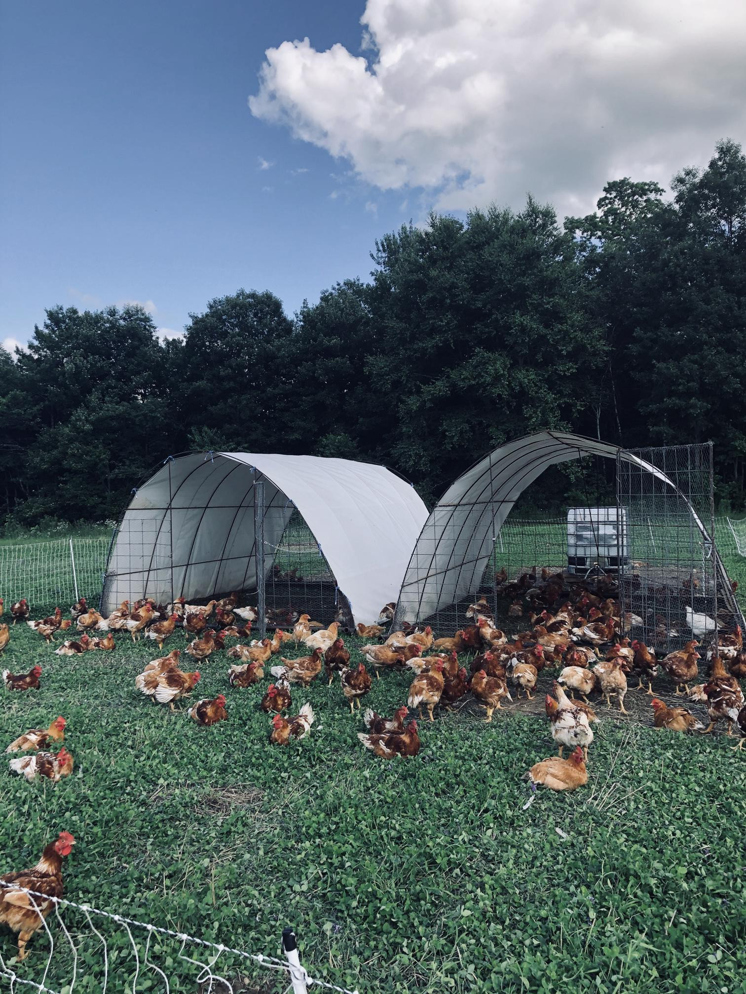 There are probably as many different farming methods as there are farms. When we started farming, we committed ourselves to practices that promote health in our animals, fertility in our soil and satisfaction in our customers. This means that we don't often do things the 'easy way', like spraying crops or confining animals, which have lowered food costs for years on other farms. We believe in strengthening the health of our soil as a way to produce healthy and tasty vegetables, so to add fertility to our fields, we use intensive crop rotation, cover crops, and composted manure from our animals. We grow hardier, heirloom vegetables whenever possible as a way to increase food diversity. We believe in the highest standards of animal husbandry practices. Our pigs spend their days rooting in our woodlot, wallowing in mud, and sunning themselves on pasture. Our sheep and goats eat exclusively grass, which is their natural food source and which keeps them healthy and happy. We rotate their pastures daily, so that the fields don't get exhausted and our herds are always on fresh grass. Our chickens are in 'chicken tractors' which are mobile coops that we move every morning. This allows them protection from predators, access to pasture, and fresh air while being protected from inclement weather. These practices are what we believe make a farm sustainable in the long run, by reducing environmental degradation and producing the highest quality food available. The trade-off for this position can often be the price of our products. To help us keep our costs down, since food should be affordable, consider buying a CSA share, paying with cash or a check, bringing back your egg cartons, and supporting us during the winter and spring when costs can be high and income low. Our goal is to improve our land each year and leave it in better health than when we started farming.